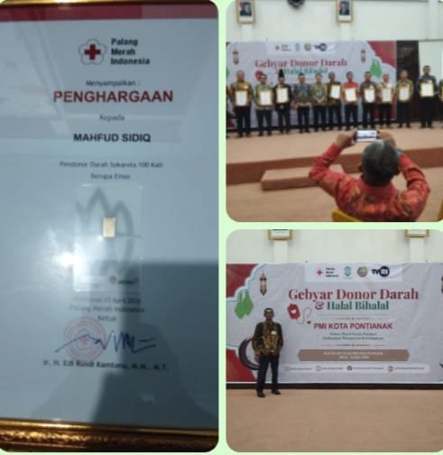 Mahfud Sidiq, yang juga merupakan alumni SMA Negeri 4 Pontianak, mengungkapkan bahwa dirinya telah melakukan donor darah sebanyak 107 kali hingga saat ini.