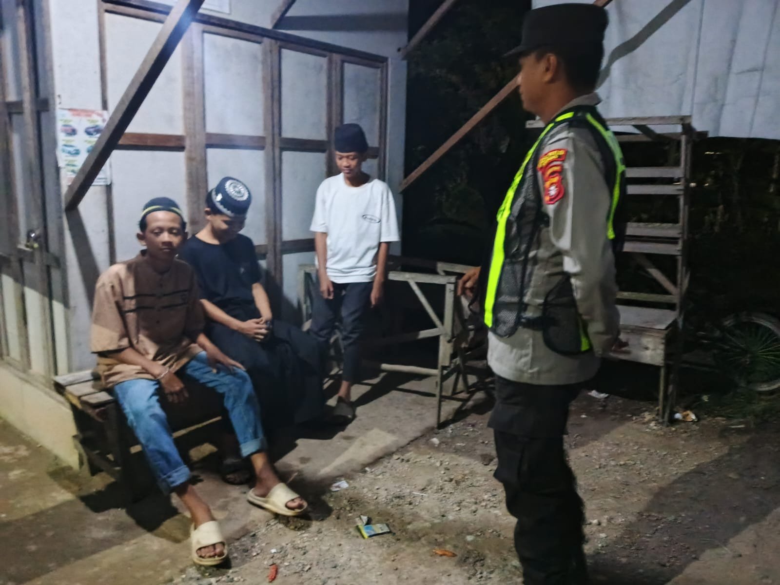 Terlihat saat patroli malam, anggota piket Polsek Pulau Petak melakukan patroli di warung warung kecil dan pemukiman penduduk Kecamatan Pulau Petak, Kamis (12/03/2026) Malam