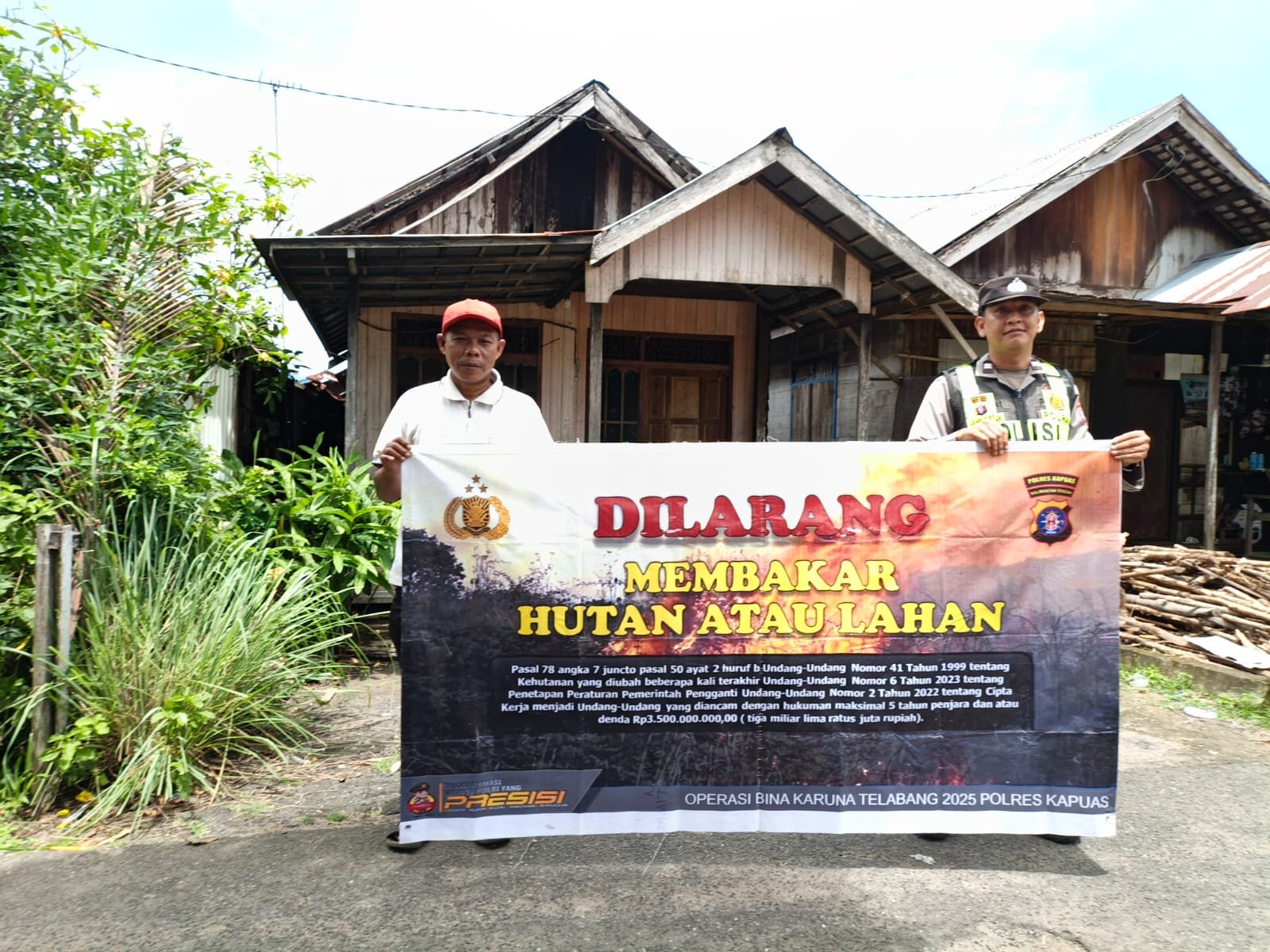 Bentang Sepanduk Larangan Membakar Hutan Dan Lahan Personil Polsek Kapuas Murung Melalui Giat Sosialisasi Karhutla