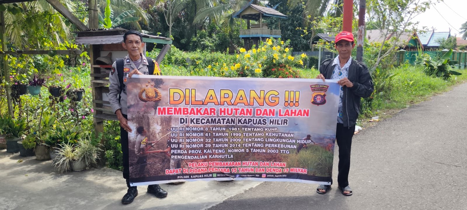Polsek Kapuas Hilir_Polres Kapuas Jajaran Polda Kalteng terus berupaya mencegah terjadinya kebakaran hutan dan lahan dengan rutin menyampaikan Himbauan Kamtibmas serta mengimbau kepada seluruh warganya untuk tidak membakar hutan dan lahan, baik pada saat musim kemarau ataupun musim penghujan di wilayah hukum Polsek Kapuas Hilir Kec.Kapuas Hilir Kab.Kapuas Prov.Kalimantan Tengah.Senin (20/04/2026)