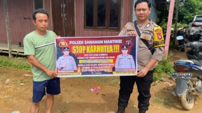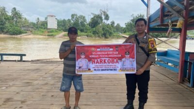 Tribratanews.kalteng.polri.go.id-Kapuas Hulu-Dalam upaya meningkatkan pencegahan dan penanggulangan penyalahgunaan narkoba, personel Polsek Kapuas Hulu Polres Kapuas jajaran Polda Kalteng Aipda Simpang L. S. Purba dan Aiptu Karyadi, S.Sos rutin melaksanakan sosialisasi telah melaksanakan imbauan melalui media spanduk bertuliskan “Stop Narkoba” di beberapa lokasi yang dianggap rawan tindak pidana narkoba. Bertempat di Desa Sei Hanyo Kecamatan Kapuas Hulu Kabupaten Kapuas Provinsi Kalimantan Tengah, Selasa (21/04/2026) pukul 15.15 WIB