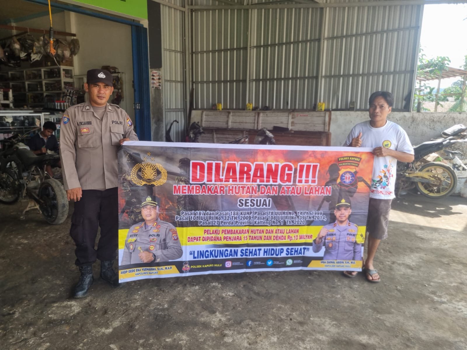 Sedangkan sanksi dan pidana membuka lahan dengan cara membakar, sesuai dengan pasal 187 dan pasal 188 KUHP, pasal 78 UU RI Nomor 41 Tahun 1999 tentang kehutanan, pasal 99 ayat (1), pasal 108, pasal 116, pasal 118, dan pasal 119 UU RI Nomor 32 Tahun 2009 tentang lingkungan hidup, pasal 108 UU RI Nomor 39 Tahun 2014 tentang perkebunan, pasal 27 Perda Prov. Kalteng Nomor 1 Tahun 2020 tentang pengendalian karhutla, pelaku pembakaran lahan dan hutan dapat di pidana penjara 15 Tahun dan denda 15 milyar,” tegas Kapolsek. (@13)