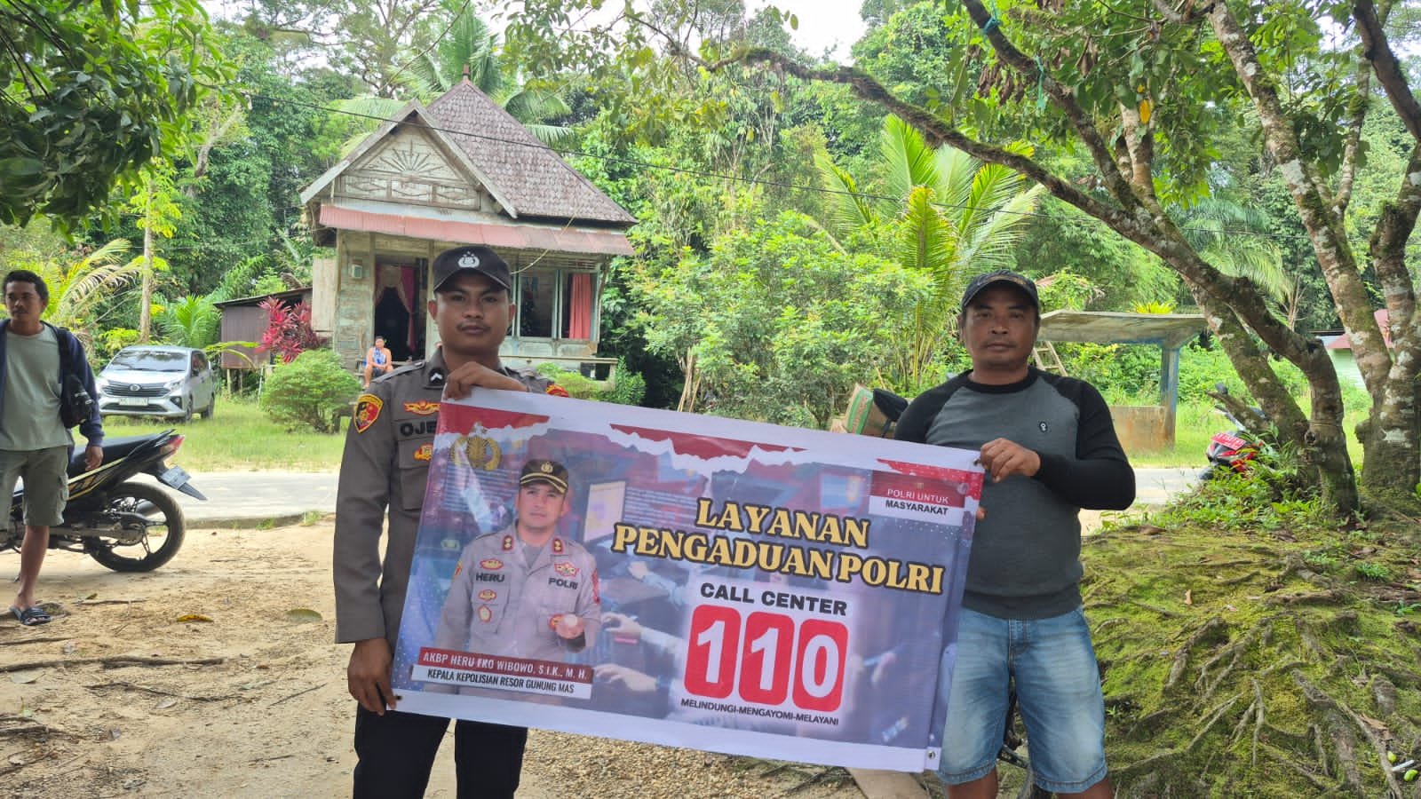 “Pemasangan sticker dan spanduk Layanan 110 ini adalah wujud kehadiran Polri yang ingin selalu dekat dan siap melayani 24 jam. Kami ingin warga di Kelurahan Rungan Simin tidak ragu atau bingung lagi saat membutuhkan bantuan polisi. Cukup tekan 110 dari telepon genggam, petugas kami akan segera merespons. Layanan ini gratis dan bertujuan untuk menciptakan rasa aman yang nyata di lingkungan kita,” ujar Kapolsek.