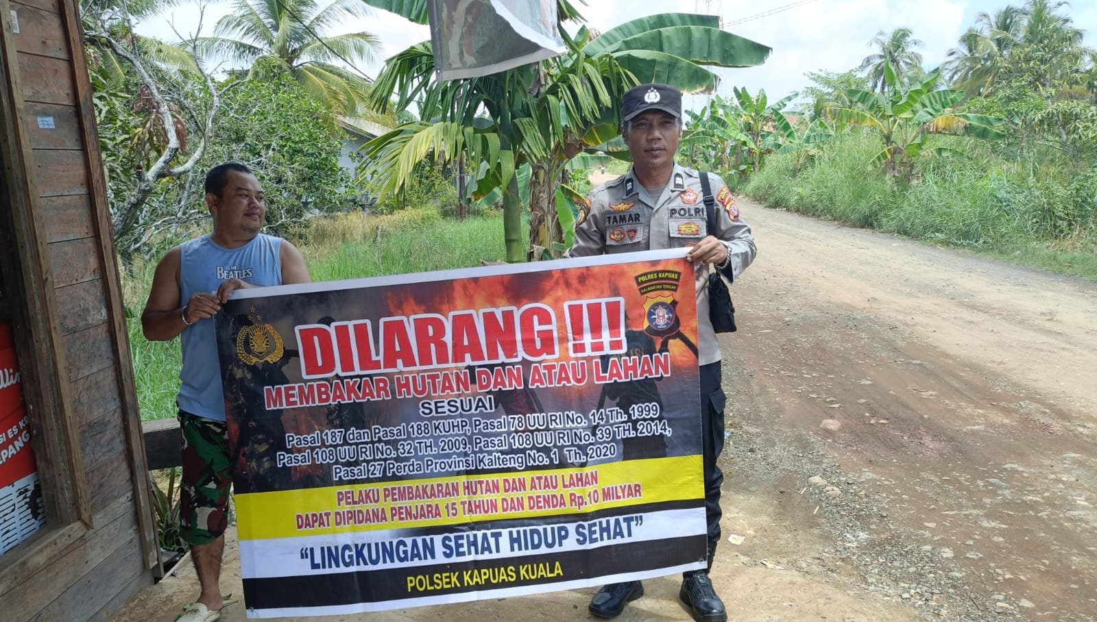 “Mari kita wujudkan Kecamatan Kapuas Kuala bebas dari kebakaran hutan dan lahan, udara bersih dan lingkungan asri,” ujar Kapolsek.