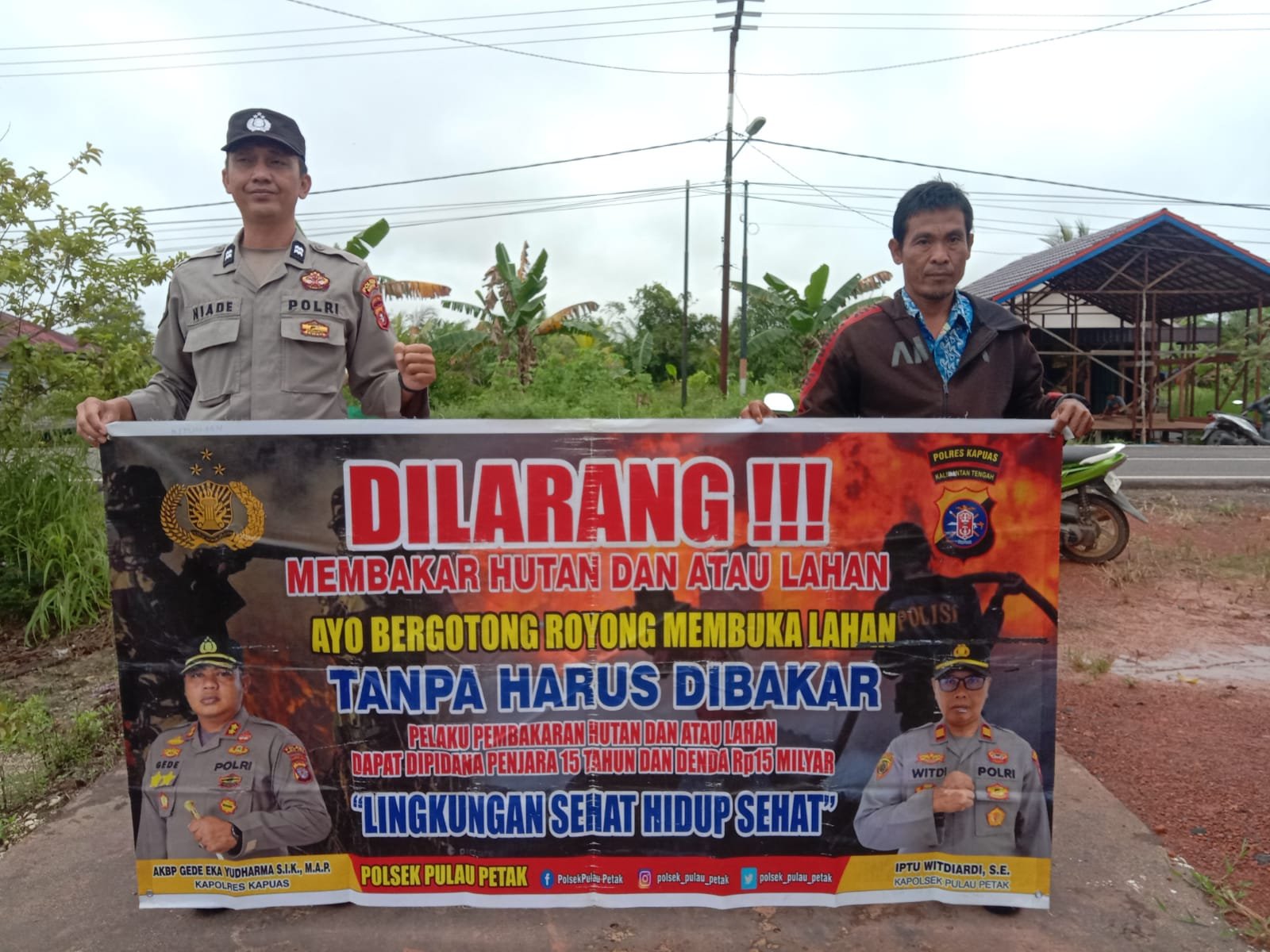 “Mari kita wujudkan Kecamatan Pulau Petak bebas dari kebakaran hutan dan lahan, udara bersih dan lingkungan asri,” ujar Kapolsek.