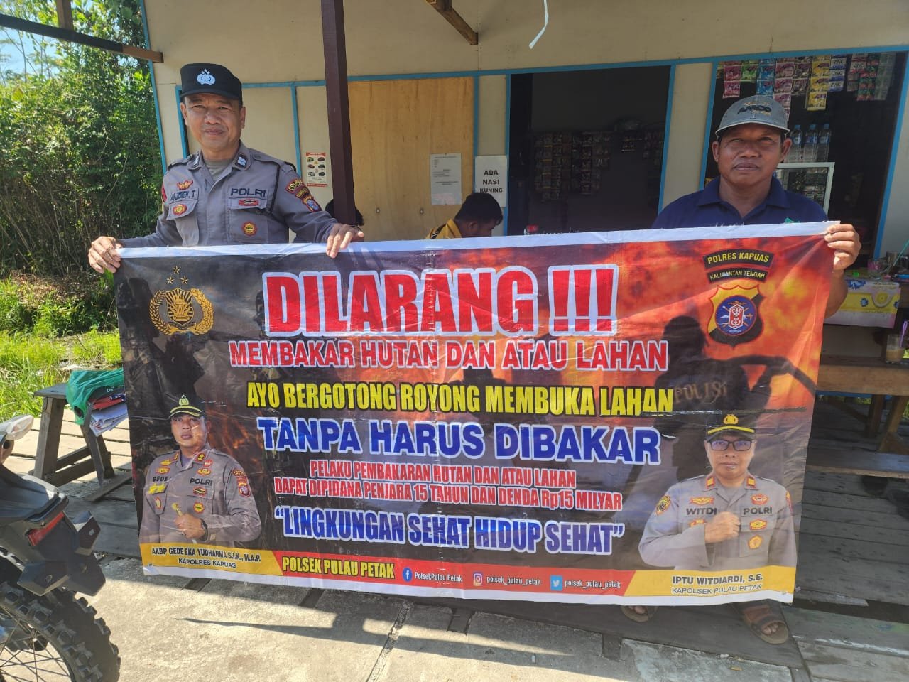 “Mari kita wujudkan Kecamatan Pulau Petak bebas dari kebakaran hutan dan lahan, udara bersih dan lingkungan asri,” ujar Kapolsek.