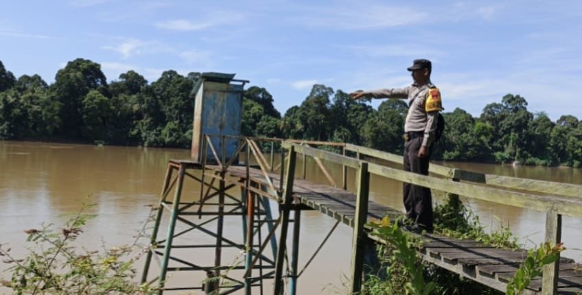 Polres Katingan- Personel Piket Sentra Pelayanan Kepolisian Terpadu (SPKT) II Polsek Tewang Sangalang Garing dan Pulau Malan, Polres Katingan, Polda Kalteng, Aipda E. L. Purba, melaksanakan pengecekan ketinggian debit air di Daerah Aliran Sungai (DAS) Katingan, wilayah Kelurahan Pendahara Kecamatan Tewang Sangalang Garing, Selasa (03/2/2026) pagi.