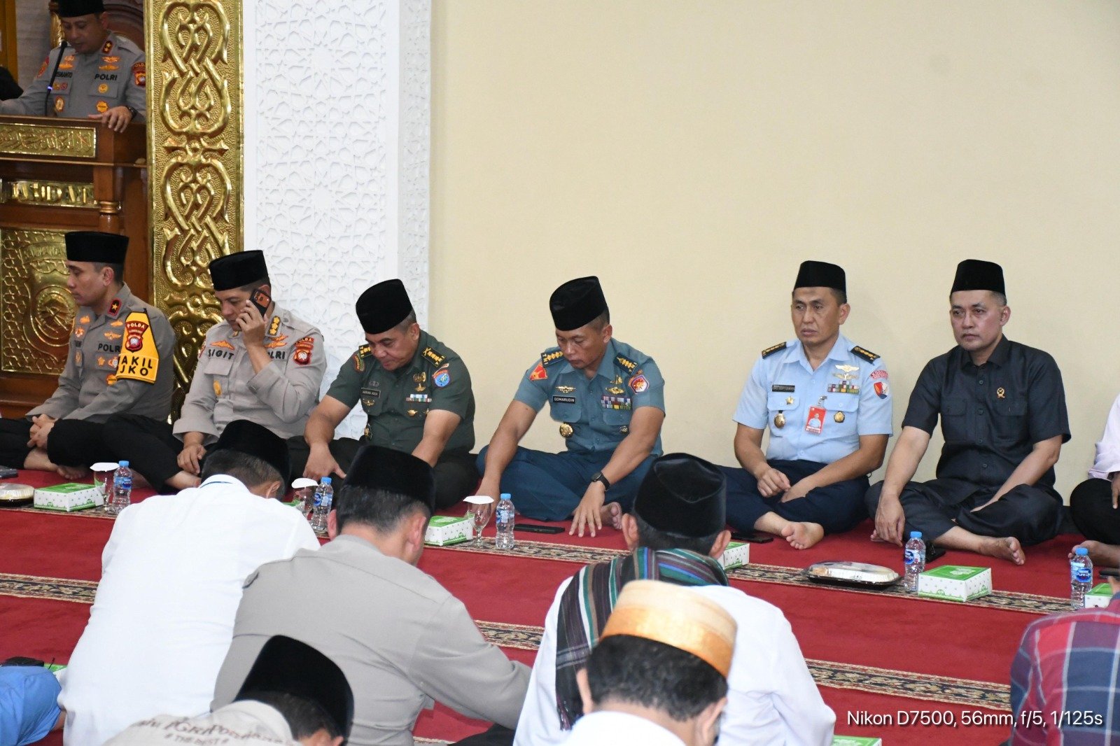 Tausiyah Ramadan disampaikan oleh Ustad Abdurahman, mengajak seluruh hadirin memperkuat iman, persatuan, dan kepedulian sosial. Momentum buka puasa bersama ini menjadi wadah mempererat silaturahmi dan sinergitas lintas instansi dalam menjaga stabilitas keamanan dan kerukunan di Kalimantan Barat.