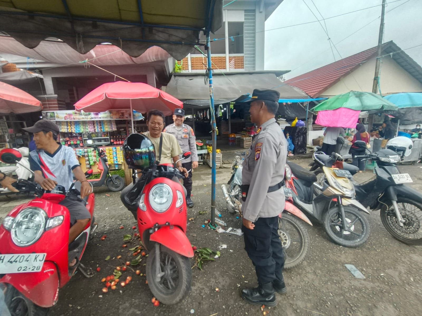 Koordinator ON CALL Charlie Polres Bartim, AKP Sukajim, S.H., M.M., menyampaikan bahwa peran juru parkir sangat strategis dalam membantu mencegah terjadinya aksi curanmor di lingkungan pasar.