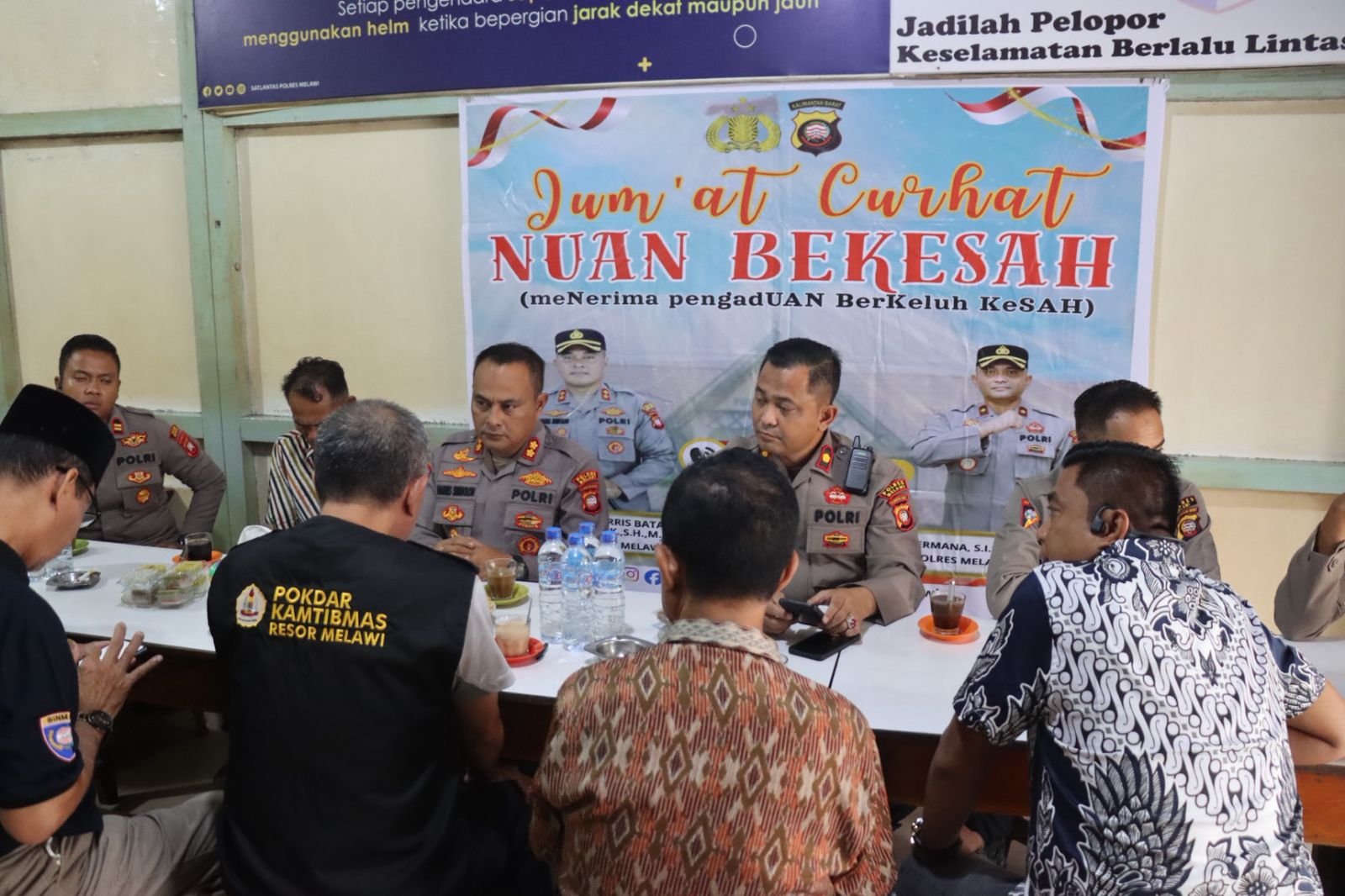 Kapolres Melawi, AKBP Harris Batara Simbolon, S.I.K., S.H., M.Tr.Ospla  melaksanakan kegiatan Jumat Curhat dengan tema “Menerima Pengaduan Berkeluh Kesah (Nuan Bekesah)” di Warkop Sejuta Kawan Nanga Pinoh, Kabupaten Melawi, Jumat (31/10/2025).