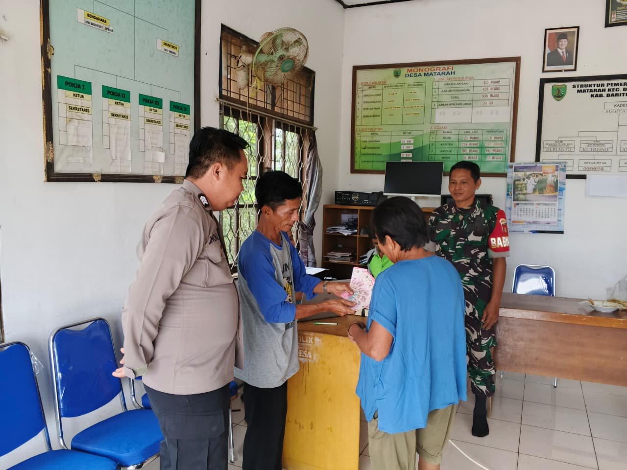 Barito Timur – Bhabinkamtibmas Desa Matarah, Polsek Dusun Timur, BRIGPOL Jhon Mejer, menghadiri kegiatan penyaluran Bantuan Langsung Tunai Dana Desa (BLT-DD) periode Januari hingga Maret Tahun 2026 yang dilaksanakan di Kantor Desa Matarah, Kecamatan Dusun Timur, Kabupaten Barito Timur, Jumat (10/04/2026).