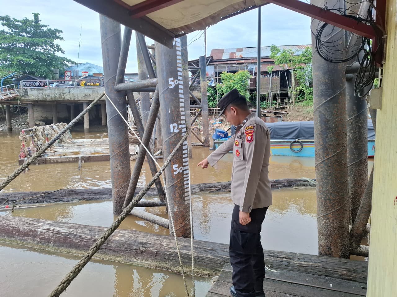 Polres Barsel – Mengantisipasi kenaikan air kiriman dari hulu Sungai Barito, personel Polsek Dusun Selatan (Dusel), Polres Barito Selatan (Barsel), Polda Kalteng, melaksanakan patroli mengecek debit air di bantaran Sungai Barito, Kota Buntok, Selasa (30/9/2025) pagi.
