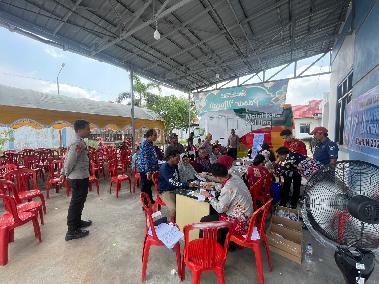 Polres Seruyan, 26 Maret 2026 – Personel Pamapta I Polres Seruyan yang dipimpin langsung oleh IPDA Aprianto melaksanakan pengamanan kegiatan penyaluran Bantuan Sosial (Bansos) Kartu Huma Betang Sejahtera (KHBS) Tahun 2026 di Kantor Bank Kalteng Cabang Kuala Pembuang, Kamis (26/3/2026) pagi. Kegiatan yang berlangsung mulai pukul 08.00 WIB ini menyasar warga masyarakat Desa Persil Raya, Kecamatan Seruyan Hilir, sebanyak 239 orang.