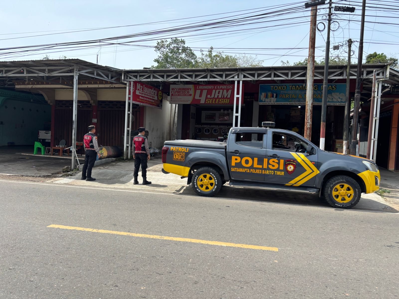 Selanjutnya, patroli dilanjutkan ke lingkungan MZ Laundry di Jalan A. Yani Komplek Sulung, Kelurahan Tamiang Layang, Kecamatan Dusun Timur. Personel melakukan observasi dan dialog dengan masyarakat sekitar, dengan hasil situasi kamtibmas dalam keadaan aman dan kondusif.