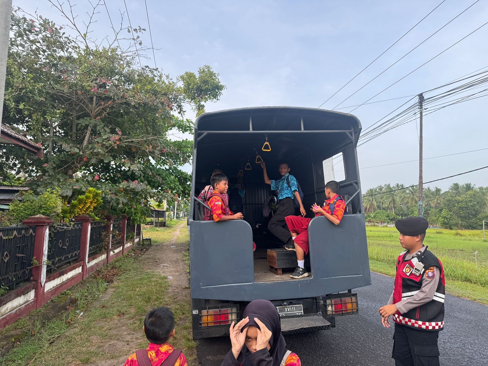 Seluruh siswa sampai di sekolah masing-masing sebelum bel masuk berbunyi – Dengan pengawalan dan pendampingan personel, para pelajar dapat tiba di sekolah tepat waktu tanpa hambatan berarti.