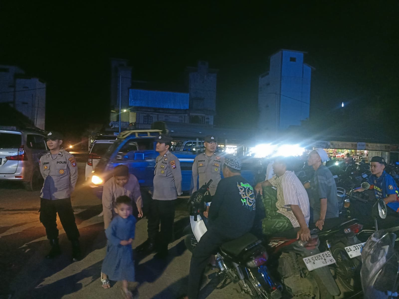 Guna memastikan keamanan pelaksanaan ibadah selama Ramadan, personel pengamanan melaksanakan Pam Sholat Tarawih di Masjid Darul Ibadah Terminal Tamiang Layang pada Jumat (13/3/2026).