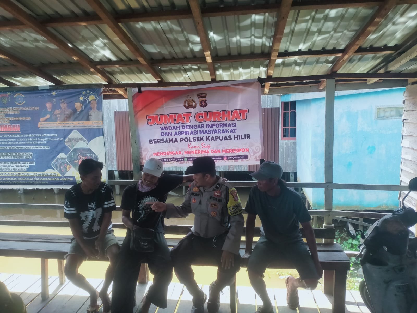 Polsek Kapuas Hilir melalui PS KA SPKT III AIPDA Arif Rachman dan Warga Masyarakat Kec. Kapuas Hilir, Kab. Kapuas, Prov. Kalteng.Telah melaksanakan Kegiatan Jum’at Curhat, yang merupakan program quick wins oleh Kapolri untuk mendengar langsung permasalahan atau keluhan dari masyarakat dengan Tujuan menampung keluhan dan curhatan masyarakat, Jum’at Curhat juga bisa dijadikan wadah Pembinaan Kemitraan antara Polsek Kapuas Hilir Jajaran Polres Kapuas Polda Kalteng dengan Masyarakat, dimana Polri dapat berinteraksi secara langsung dengan masyarakat maupun tokoh masyarakat untuk mendengarkan saran, kritikan dan Masukan serta aduan Masyarakat terkait dengan pelayanan prima Kepolisian serta memelihara Kamtibmas.