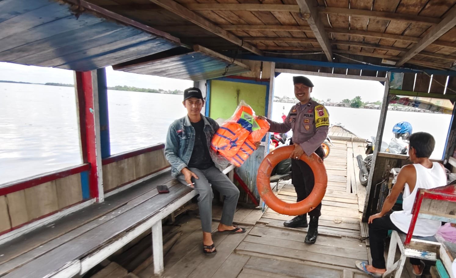 Personel Polsek Kapuas Murung Laksanakan Giat Rutin Cek Situasi Pelabuhan Fery Penyebrangan Di Kelurahan Palingkau Baru