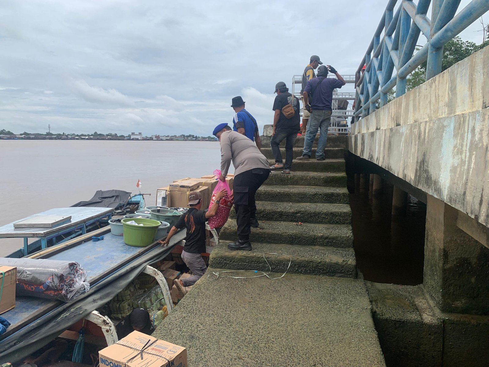 KUALA KAPUAS – Personel Satuan Polisi Perairan dan Udara (Satpolairud) Polres Kapuas kembali menunjukkan kehadiran Polri di tengah masyarakat melalui pelayanan humanis. Dalam kegiatan rutin pengamanan dan pemantauan arus transportasi sungai, anggota Satpolairud terlihat membantu warga yang tengah melakukan bongkar muat barang di Pesisir DAS Kuala Kapuas, Rabu (25/2/2026).