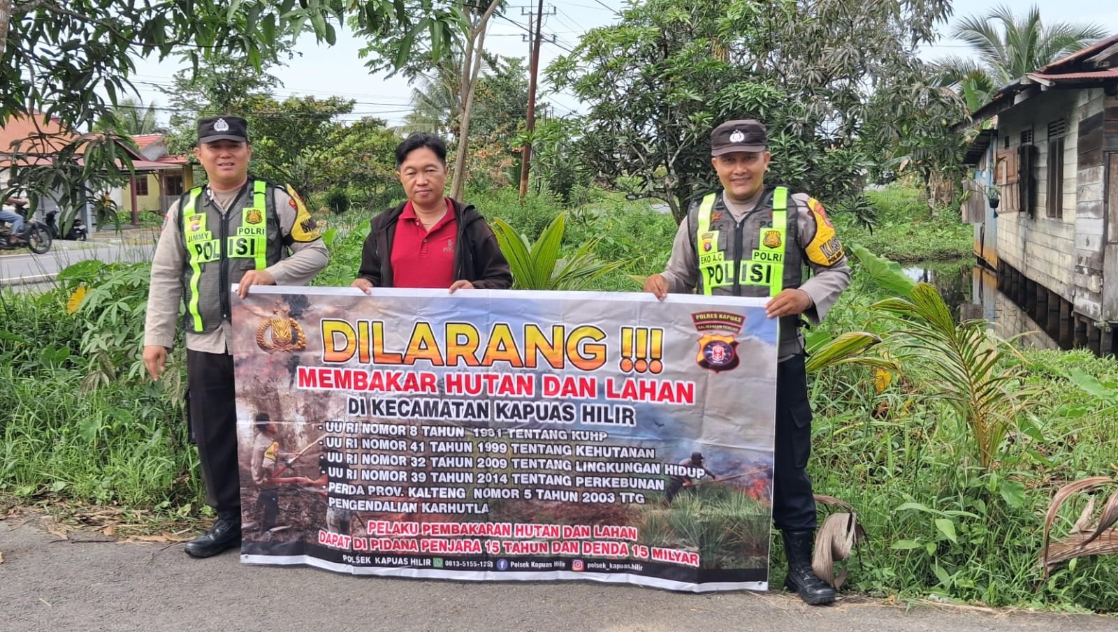 Kapolsek Kapuas Hilir Iptu Achmad Saepudin melalui anggotanya menyampaikan pesan serta himbauan kepada Warga masyarakat yang mempunyai lahan agar tidak membuka lahan dengan cara membakar, baik itu lahan pertanian maupun perkebunan.