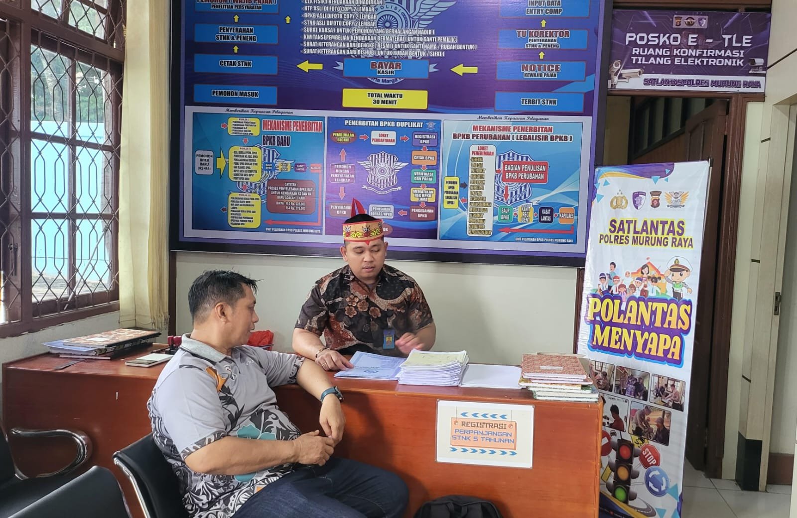 Puruk Cahu – Satuan Lalu Lintas (Satlantas) Polres Murung Raya (Mura) melaksanakan program unggulan bernama “Polantas Menyapa” sebagai upaya untuk meningkatkan kualitas pelayanan publik di bidang registrasi dan identifikasi kendaraan bermotor.