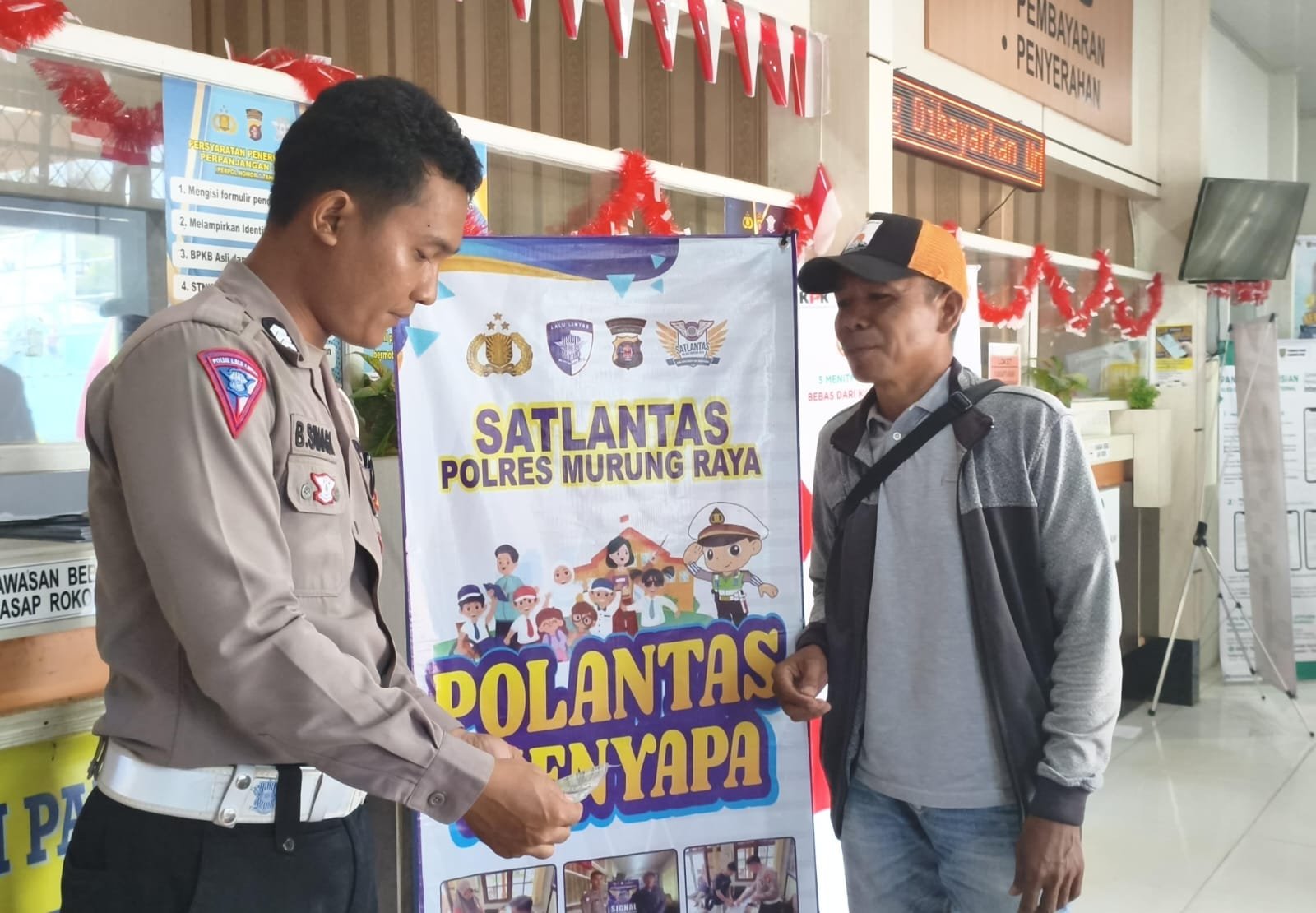 Puruk Cahu – Satlantas Polres Murung Raya (Mura) terus memastikan pelayanan administrasi kendaraan bermotor berjalan optimal melalui program Polantas Menyapa yang tetap aktif melayani masyarakat di Kantor Samsat Murung Raya.