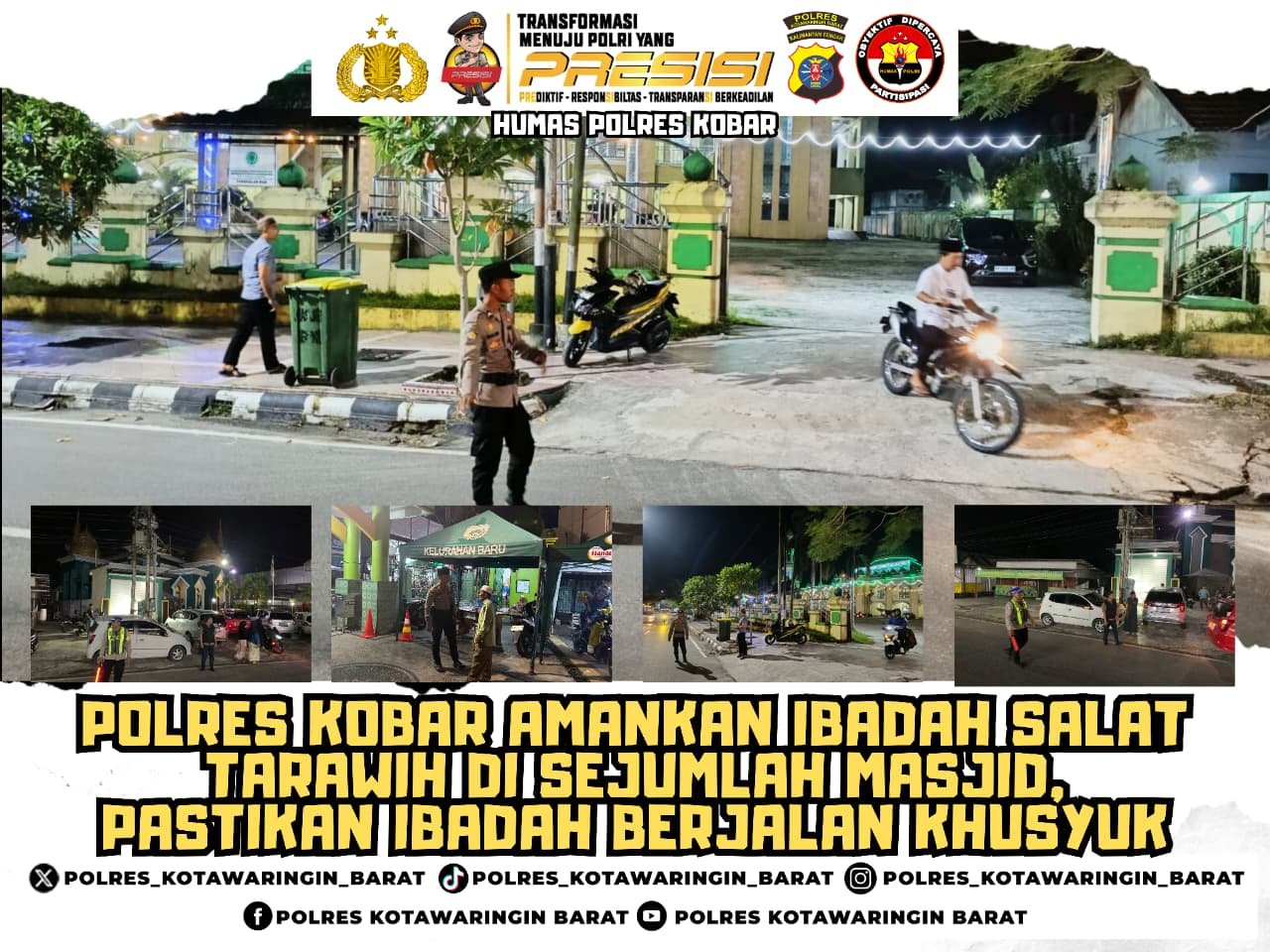 Polres Kobar – Polres Kotawaringin Barat (Kobar) melaksanakan pengamanan kegiatan ibadah salat tarawih di sejumlah masjid yang ada di Kabupaten Kotawaringin Barat pada Selasa (03/3/2026) malam.