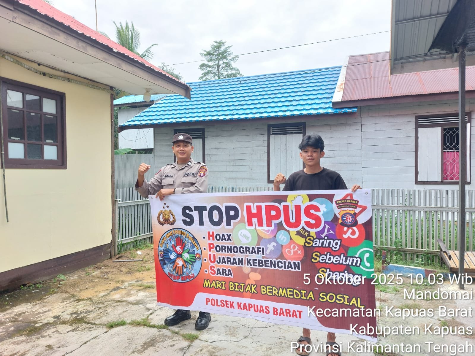 Kapolsek Kapuas Barat IPDA Prasetyo Lami, S.E. menyampaikan, anggotanya rutin mensosialisasikan program pemerintah tentang HPUS (Hoax, Pornografi, Ujaran Kebencian dan Sara) kepada warga dengan menggunakan media spanduk imbauan.