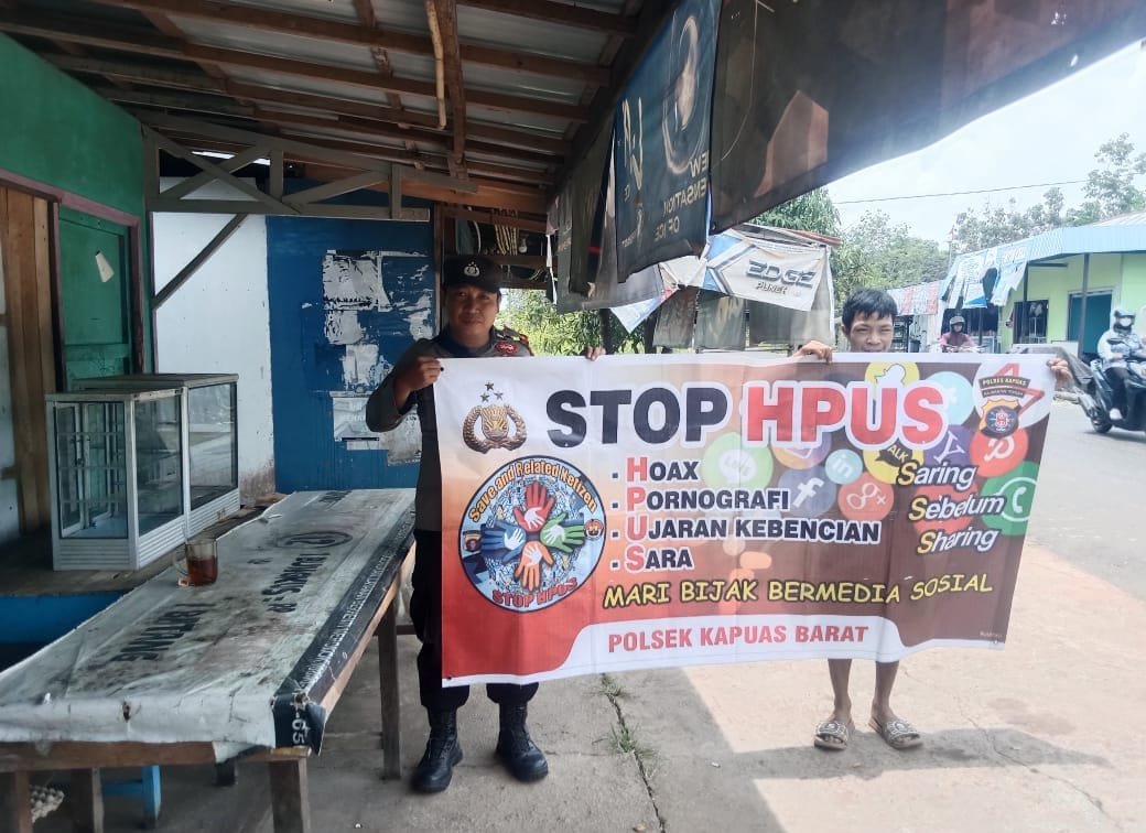 Kapolsek Kapuas Barat IPDA SISWONO TRI. S. S.H. MM. menyampaikan, anggotanya rutin mensosialisasikan program pemerintah tentang HPUS (Hoax, Pornografi, Ujaran Kebencian dan Sara) kepada warga dengan menggunakan media spanduk imbauan.