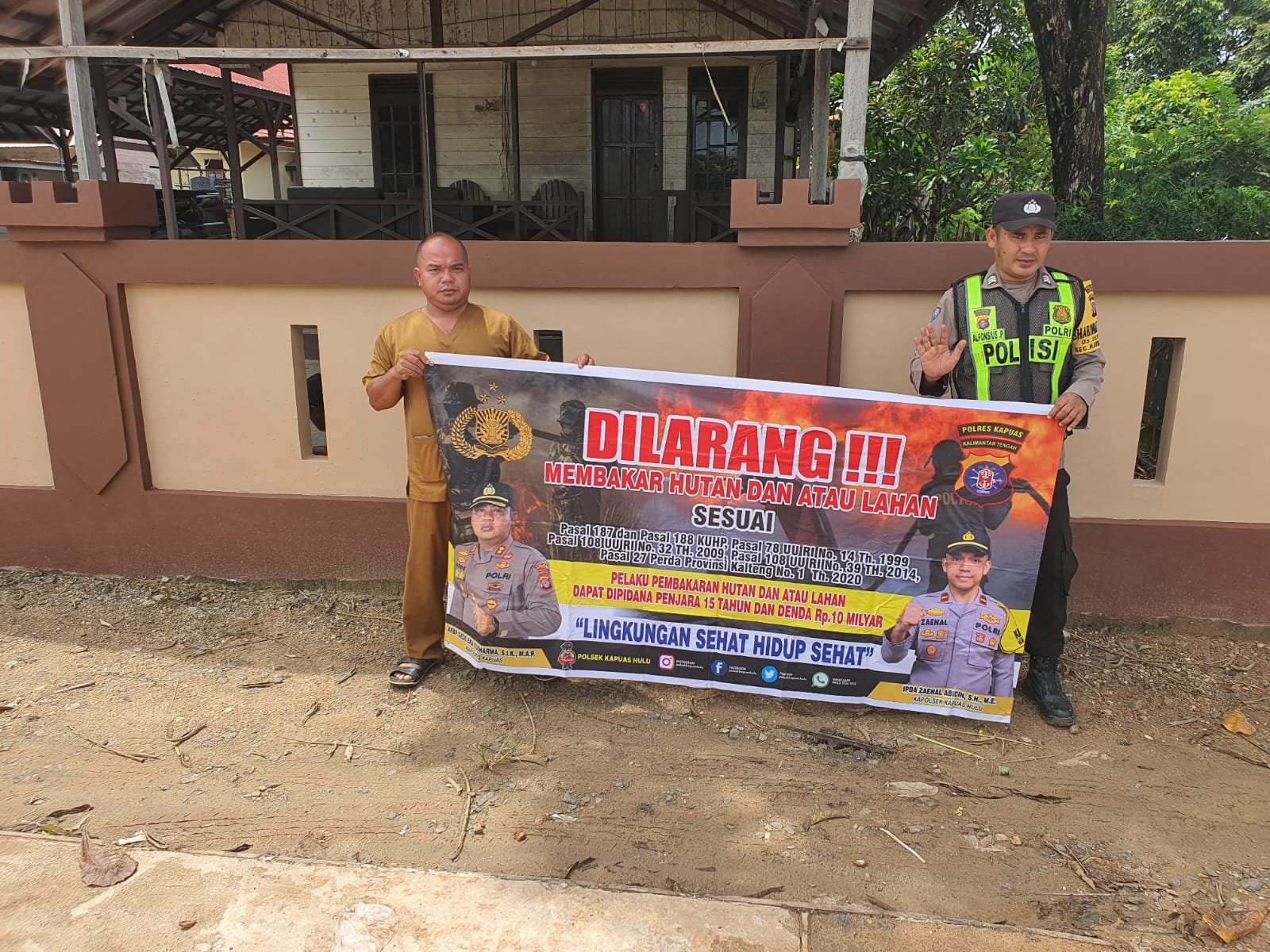 Tribratanews.kalteng.polri.go.id-Kapuas Hulu-Dalam rangka mencegah kebakaran hutan dan lahan (karhutla) di wilayah Kecamatan Kapuas Hulu, oleh personel Polsek Kapuas Hulu Aipda Imanuel P. Nadeak dan Brigpol A. Pasaribu semakin intensif melakukan sosialisasi serta memberikan imbauan kepada masyarakat terkait bahaya dan dampak dari karhutla.