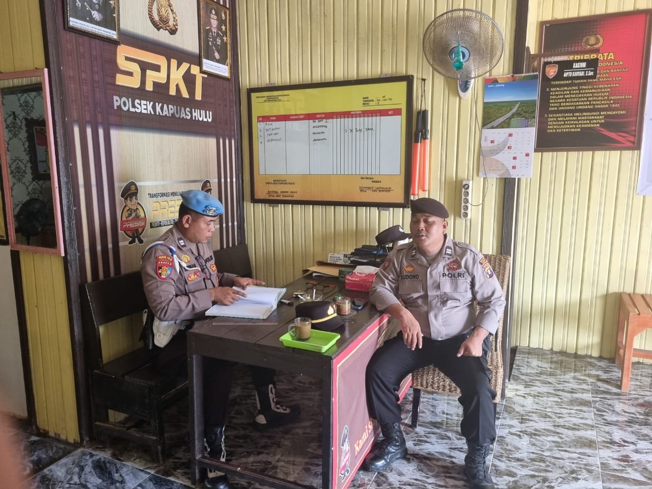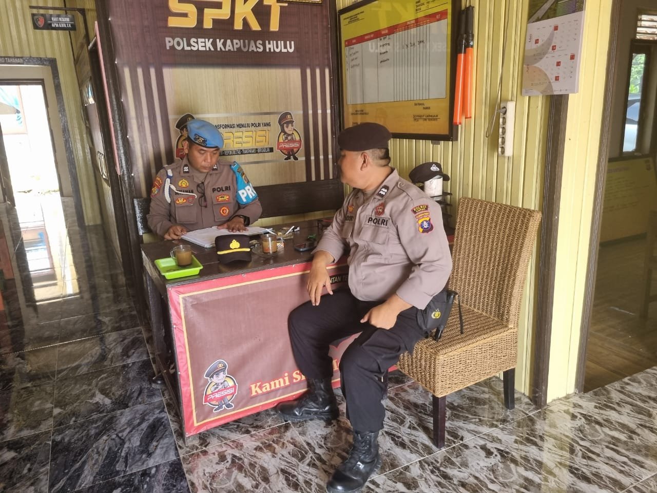 Tribratanews.kalteng.polri.go.id-Kapuas Hulu-Polsek Kapuas Hulu Polres Kapuas jajaran Polda Kalteng dalam rangka memberikan pelayanan yang optimal kepada masyarakat dan pengamanan mako Polsek Kapuas Hulu dilaksanakan serah terima tugas penjagaan. Serah terima penjagaan dilaksanakan oleh piket lama kepada piket baru di ruang SPKT Polsek Kapuas Hulu Polres Kapuas yang diikuti anggota SPKT, Jalan Beringin RT. 002 Kecamatan Kapuas Hulu Provinsi Kalimantan Tengah, Senin (21/07/2025) pukul 08.00 Wib.