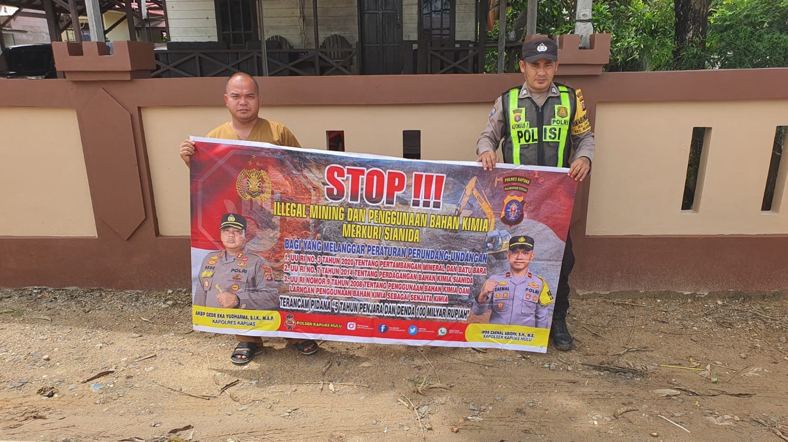 Tribratanews.kalteng.polri.go.id-Kapuas Hulu-Kegiatan sosialisasi dan imbauan kepada masyarakat dalam rangka pencegahan terjadinya kerusakan alam dengan adanya kegiatan iIlegal mining dan penggunaan bahan kimia mercuri ataupun sianida dengan mengkampanyekan larangan melakukan penambangan illegal berikut pasal, sanksi dan denda bagi pelaku penambangan illegal.