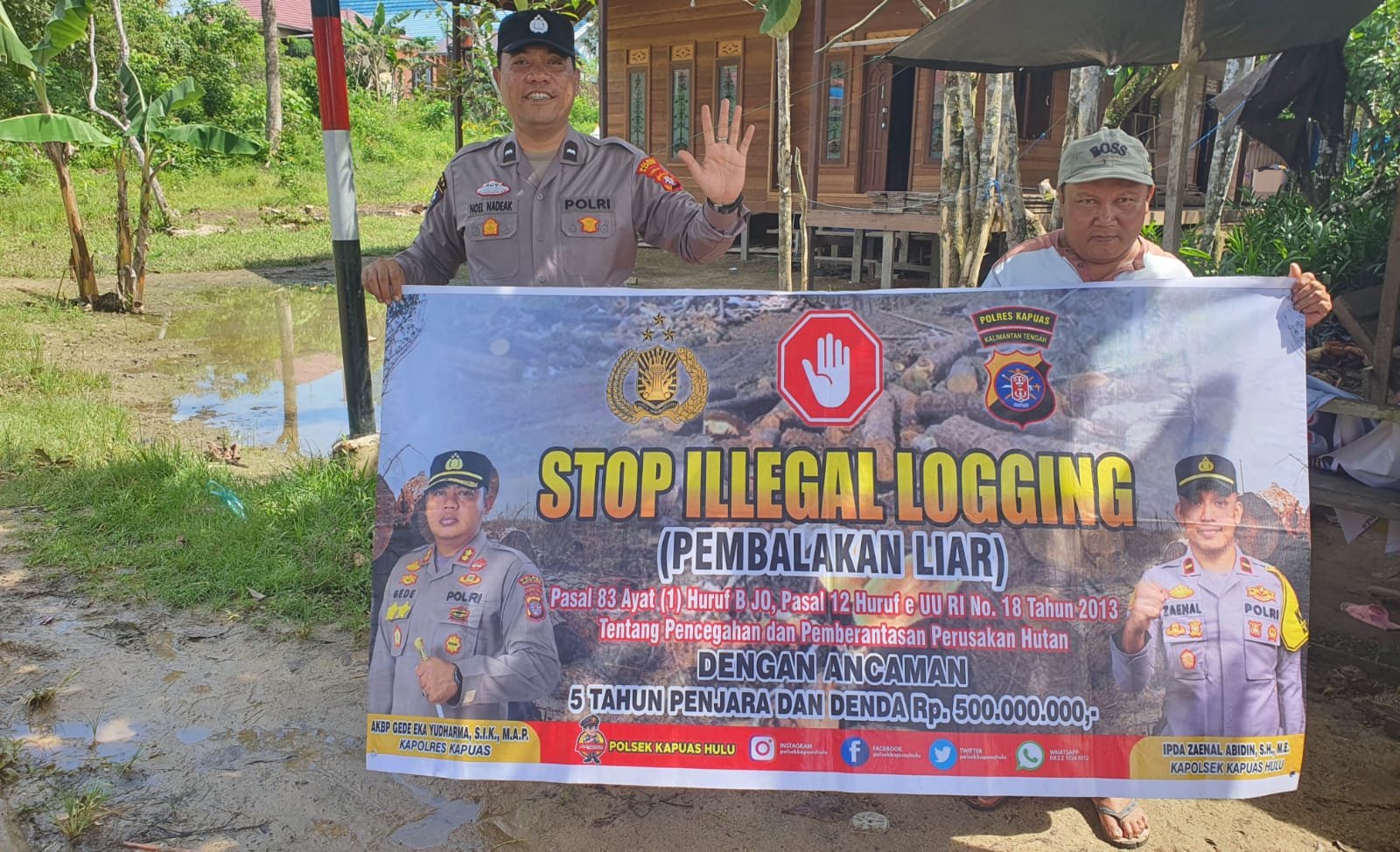 Kapolsek Kapuas Hulu Ipda Zaenal Abidin, S.H., M.E., menyampaikan kegiatan ini dilakukan secara rutin dan terus-menerus dengan langsung turun ke semua wilayah baik pada tingkat Desa maupun pada tingkat Kecamatan agar masyarakat mengetahui tentang larangan praktek illegal logging.