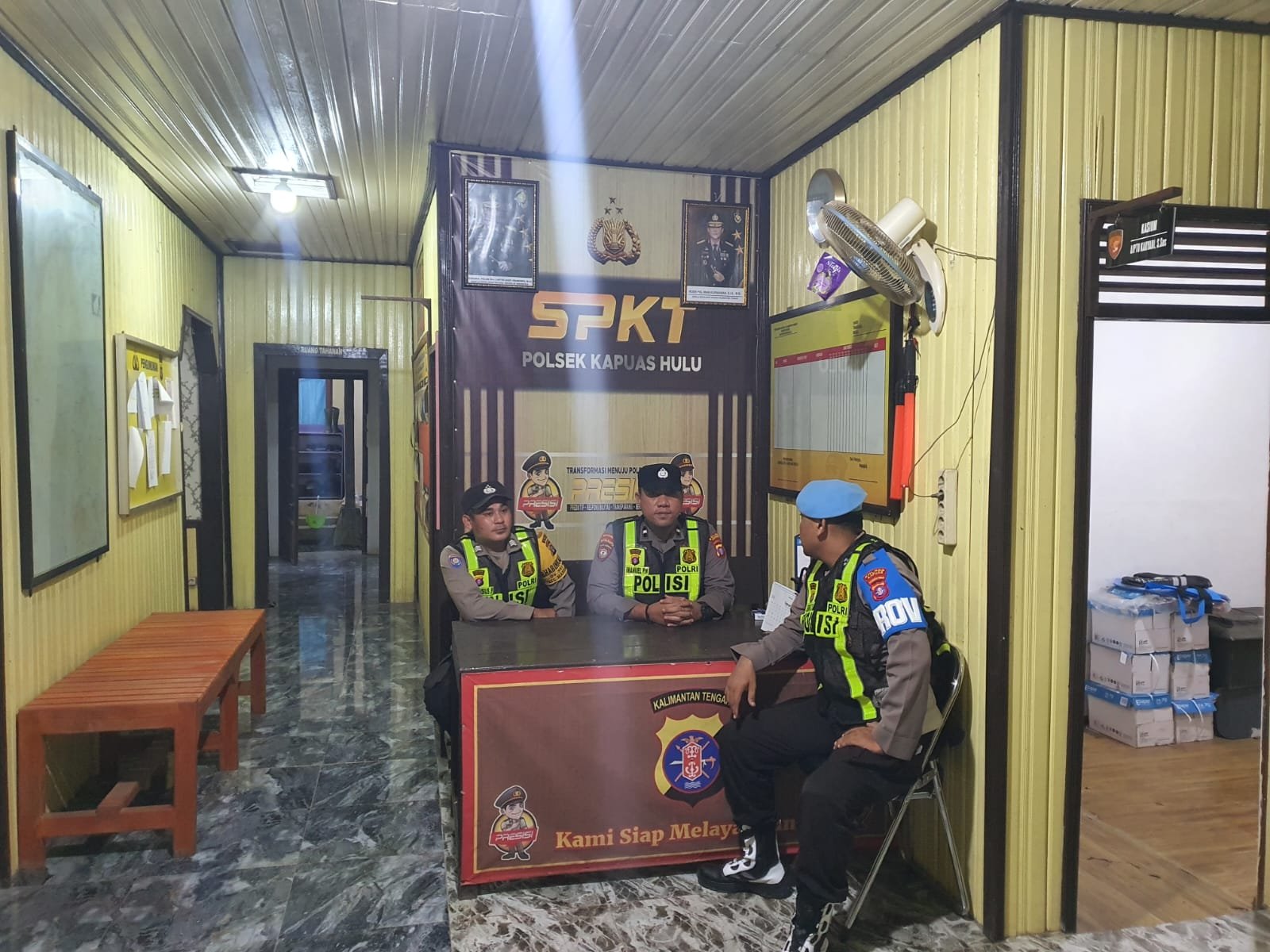 Dalam kesempatan tersebut para personel terlihat standby di dalam maupun luar ruangan jaga Mako Polsek Kapuas Hulu, Minggu (19/04/2026) pukul 20.00. WIB, bertujuan untuk meningkatkan pengamanan mako dan sebagai antisipasi terjadinya kejahatan terhadap Mako Polsek Kapuas Hulu