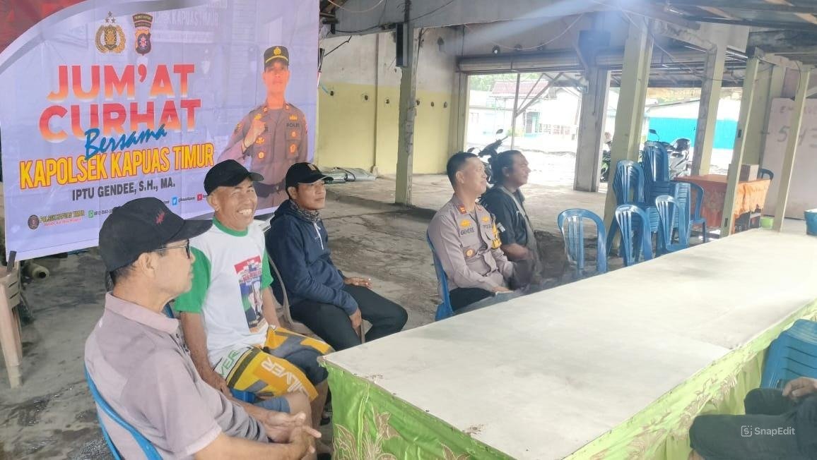 Kapolres Kapuas Akbp Gede Eka Yudharma, S.I.K, M.A.P, melalui Kapolsek Kapuas Timur Iptu Gendee, S.H., M.A. menjelaskan bahwa kegiatan Jumat Curhat merupakan salah satu program Kepolisian yang bertujuan untuk mendengarkan langsung permasalahan dari seluruh elemen masyarakat serta mencari solusi bersama untuk menciptakan keamanan dan kenyamanan dilingkungan.