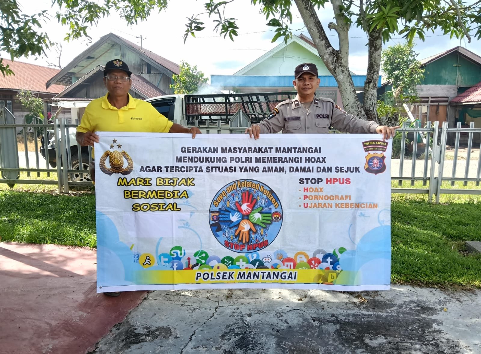 Kapolsek Mantangai Ipda Jonika, S.Sos. menyampaikan, anggotanya rutin mensosialisasikan program pemerintah tentang Anti HPUS (Hoax, Pornografi, Ujaran Kebencian dan Sara) kepada warga dengan menggunakan media spanduk imbauan.