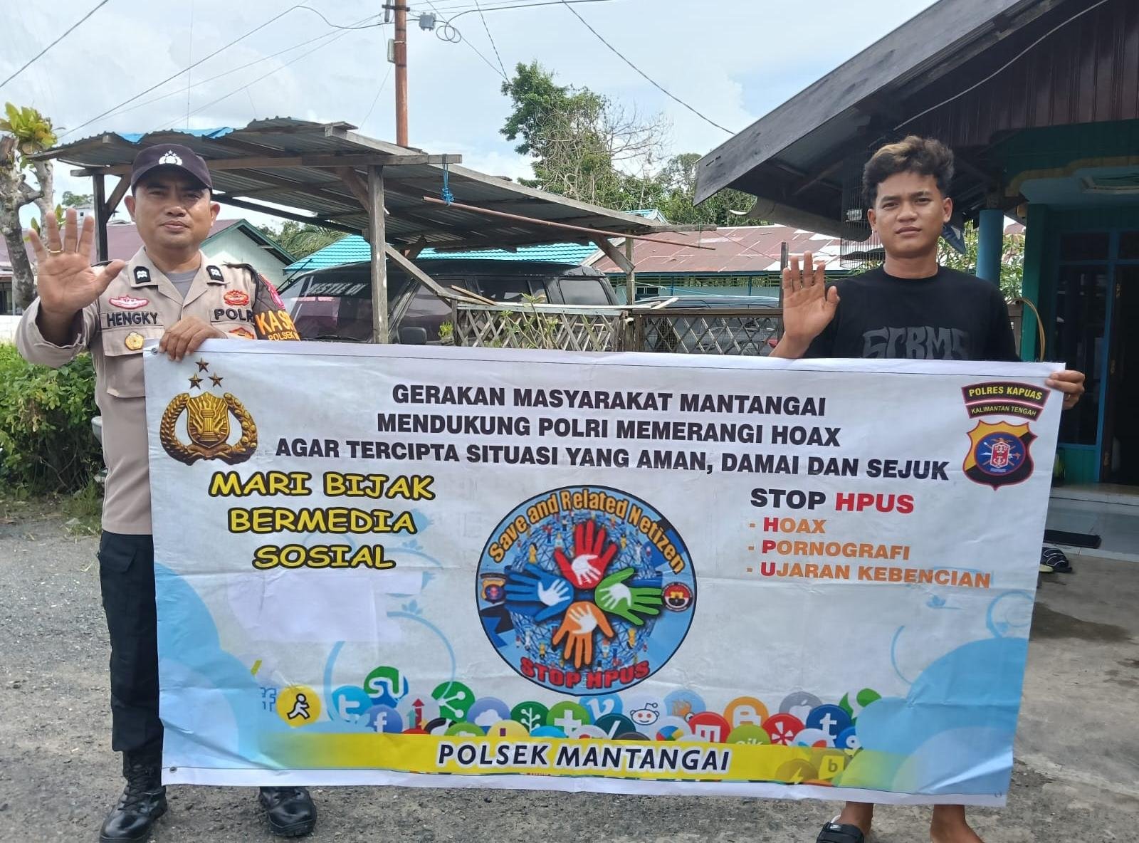 Kapolsek Mantangai Ipda Jonika, S.Sos. menyampaikan, anggotanya rutin mensosialisasikan program pemerintah tentang Anti HPUS (Hoax, Pornografi, Ujaran Kebencian dan Sara) kepada warga dengan menggunakan media spanduk imbauan.