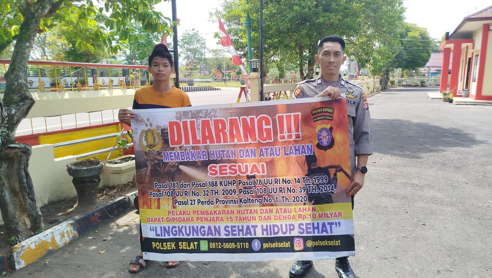 - Polsek Selat – Polsek Selat laksanakan Kegiatan Sosialisasi / Himbauan dengan menggunakan spanduk tentang larangan membuka hutan / lahan dengan cara membakar, adapun maksud dan tujuan sosialisasi tersebut agar warga mengerti dan memahami akan larangan membuka hutan dan lahan Selain mengakibatkan polusi udara juga dapat melanggar undang-undang dan dapat di pidanakan.