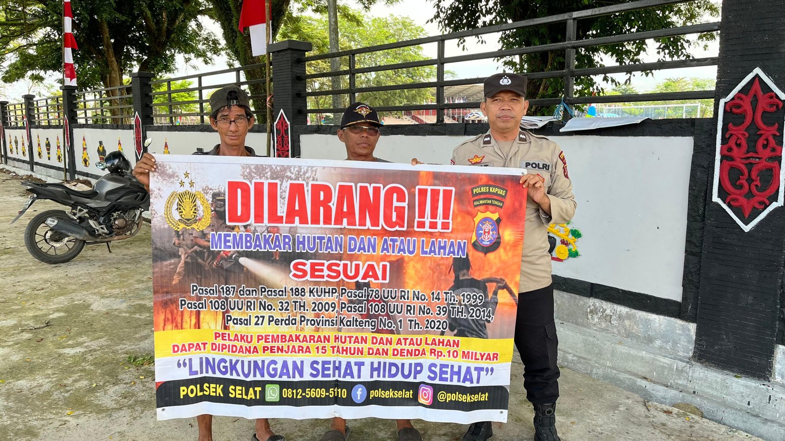 - Polsek Selat – Polsek Selat laksanakan Kegiatan Sosialisasi / Himbauan dengan menggunakan spanduk tentang larangan membuka hutan / lahan dengan cara membakar, adapun maksud dan tujuan sosialisasi tersebut agar warga mengerti dan memahami akan larangan membuka hutan dan lahan Selain mengakibatkan polusi udara juga dapat melanggar undang-undang dan dapat di pidanakan.
