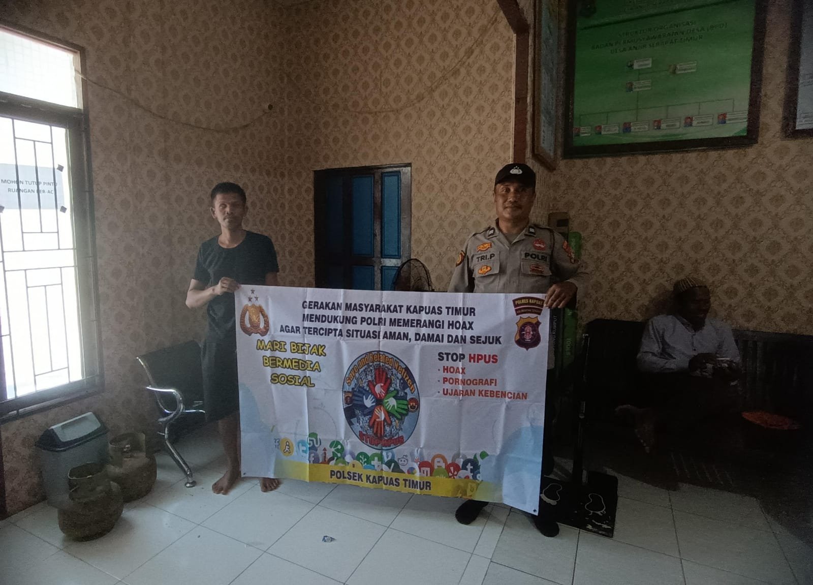 Polres Kapuas – Polsek Kapuas Timur – Sosialisasi berkaitan dengan ANTI HOAX, Personel Polsek Kapuas Timur Jajaran Polres Kapuas, Polda Kalteng secara humanis disampaikan oleh Personel Polsek Kapuas Timur memberikan sosialisasi kepada warga di Kec. Kapuas Timur Kab.Kapuas .Senin (20/04/2026) Pagi mulai Pukul 09:45 WIB