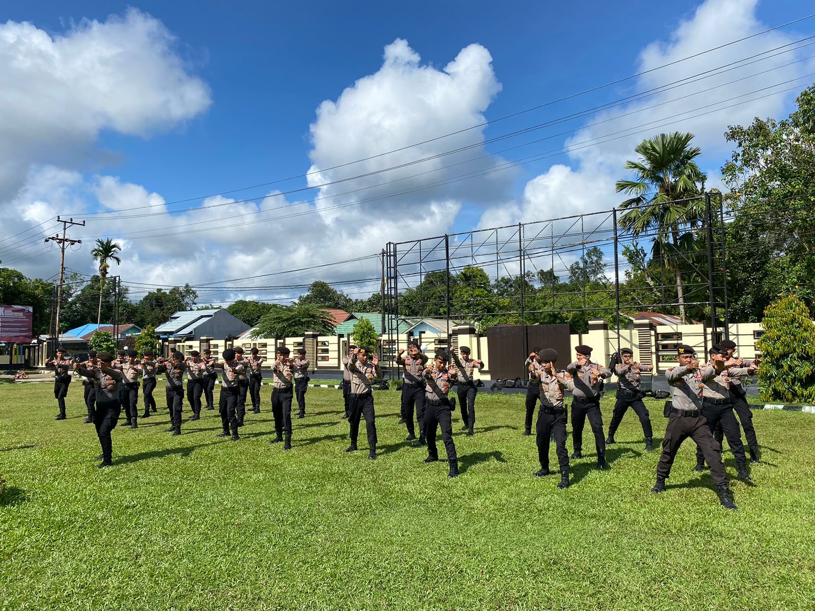 Tamiang Layang – Dalam rangka meningkatkan kemampuan serta kesiapsiagaan personel, Satuan Samapta (Sat Samapta) Polres Barito Timur- Polda Kalteng menggelar latihan penggunaan borgol di halaman Mako Polres Barito Timur, Rabu (01/10/2025).