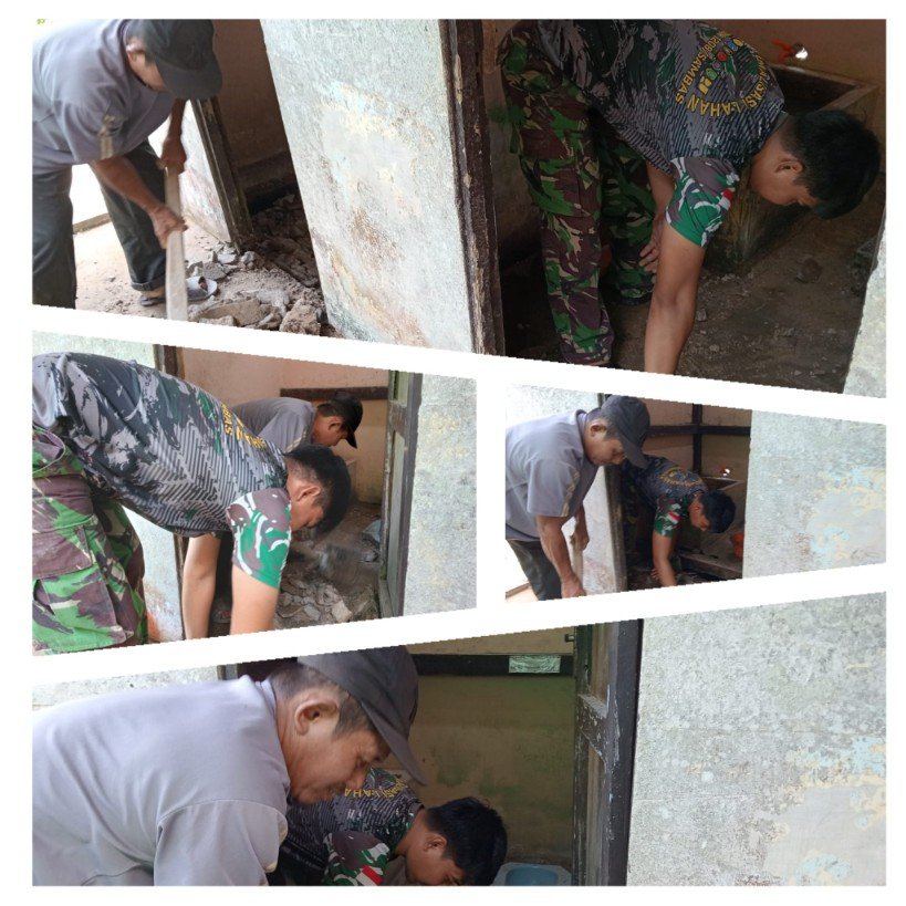Sambas, Dalam rangka mendukung peningkatan fasilitas umum di wilayah pedesaan, Satgas TNI Manunggal Membangun Desa (TMMD) Reguler ke-126 Kodim 1208/Sambas melaksanakan kegiatan perehaban MCK (Mandi, Cuci, Kakus) di salah satu Sekolah Dasar 11 Kota Lama Kecamatan Galing, Kabupaten Sambas, .