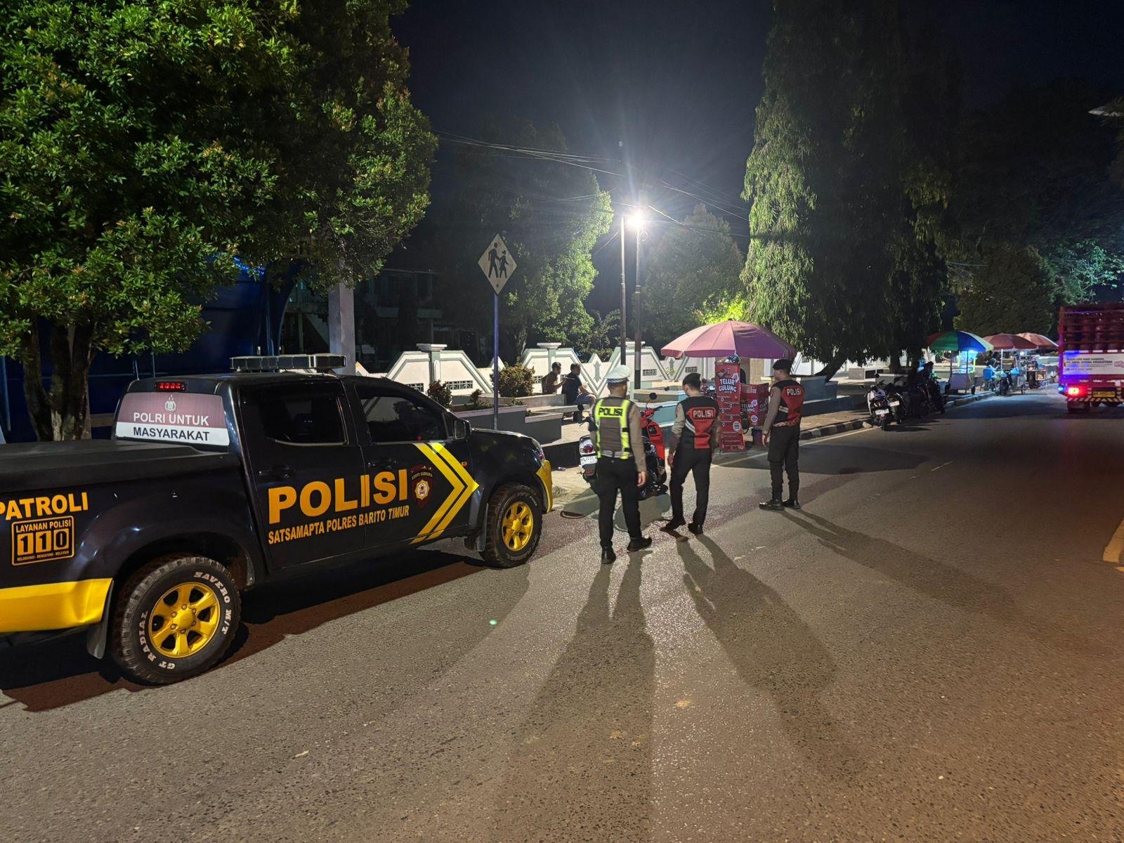 Satlantas Polres Barito Timur kembali melaksanakan patroli malam KRYD dan Blue Light Patrol pada Senin, 20 April 2026 di Jl. A. Yani tepatnya di depan SDN-3 Tamiang Layang.