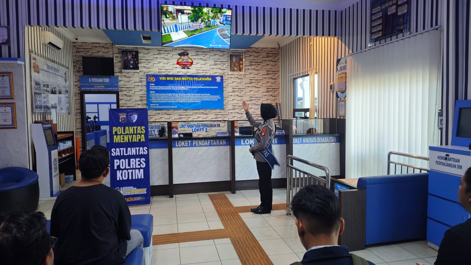 Kotim – Satuan Lalu Lintas Polres Kotim melaksanakan program “Polantas Menyapa” demi meningkatkan pelayanan bagi masyarakat, di mana dalam program tersebut, para wajib pajak dipandu untuk melakukan pembayaran pajak baik pengesahan pajak tahunan, ganti STNK 5 tahun, mutasi, dan BBN di kantor Samsat Sampit Kab. Kotim Jl. jenderal Sudirman Km. 3,5 Kec. MB. Ketapang.