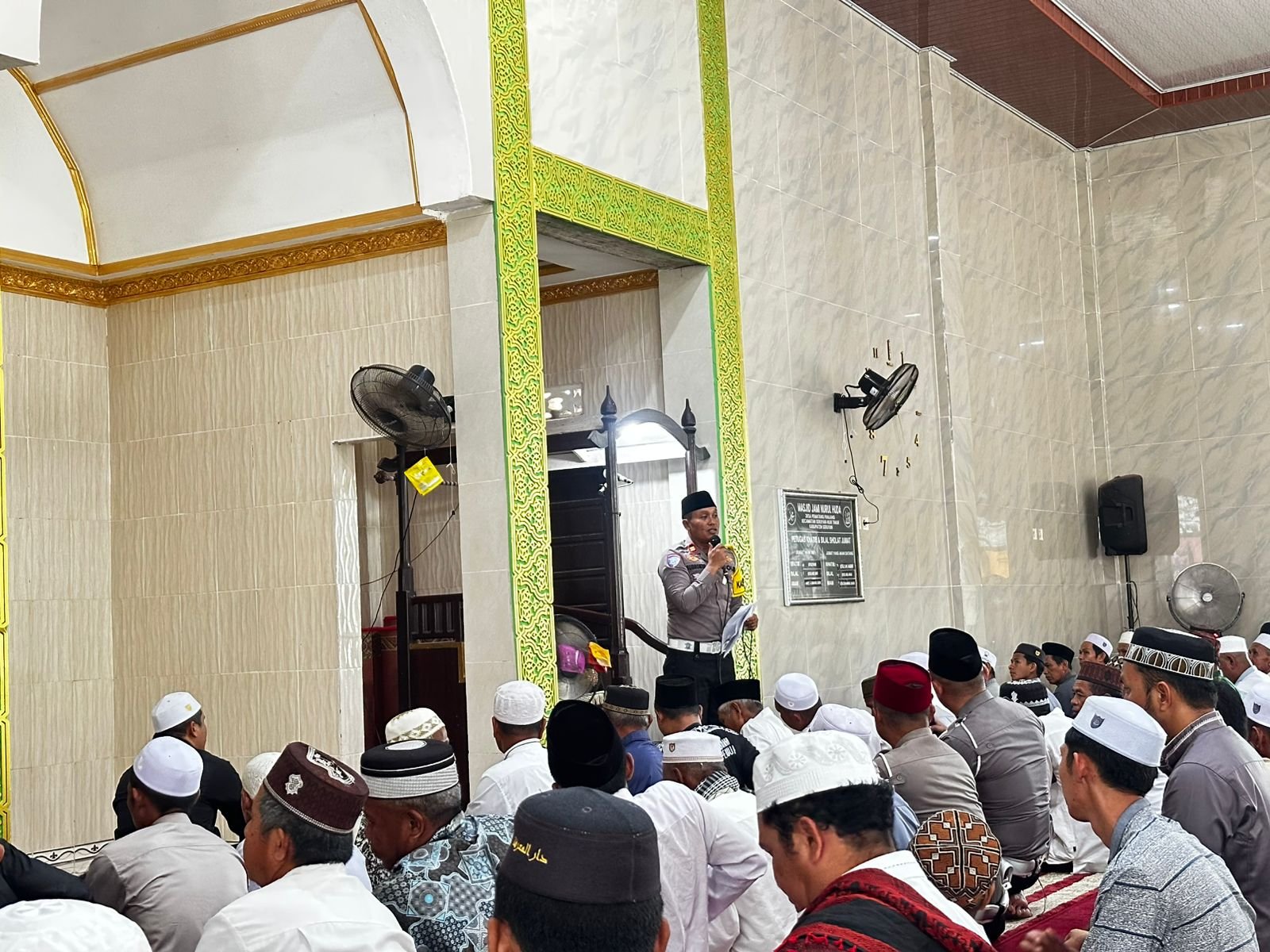Guna meningkatkan kesadaran hukum dan keselamatan masyarakat, Satlantas Polres Seruyan gencar melaksanakan sosialisasi sebagai bagian dari Operasi Keselamatan Telabang Tahun 2026. Kali ini, kegiatan menyasar komunitas di tempat ibadah, tepatnya di Masjid Nurul Huda, Pematang Kambat, Kecamatan Seruyan Hilir Timur, pada Jumat (6/2/2026).