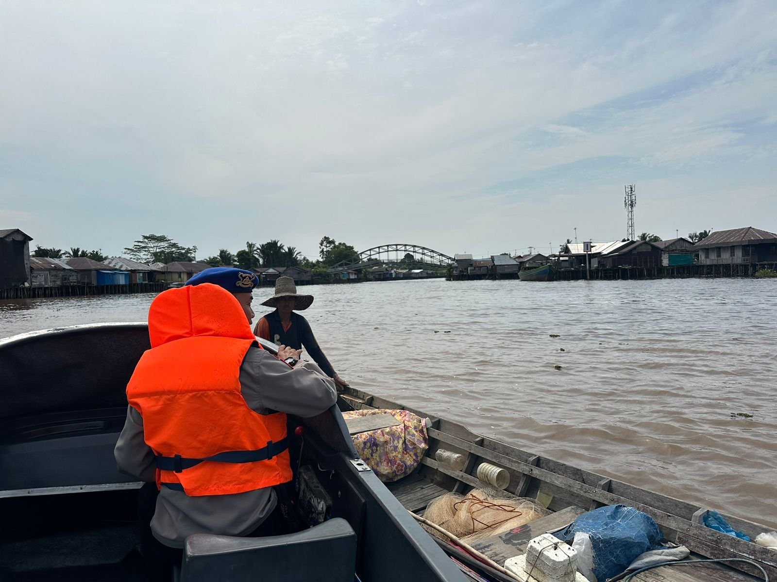 Kejadian tersebut bermula ketika personel Satpolairud yang tengah melaksanakan patroli rutin perairan melihat sebuah alkon milik warga dalam kondisi terapung tanpa kendali akibat kerusakan mesin. Menyadari potensi bahaya yang dapat mengancam keselamatan pemilik alkon, terutama karena arus sungai yang cukup deras, petugas segera mendekat dan memberikan bantuan.