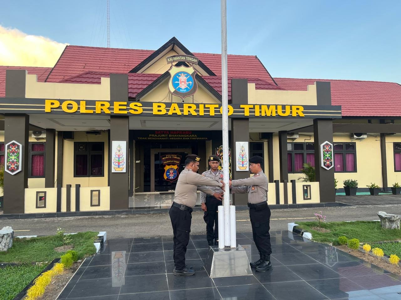 Pada Jumat, 24 April 2026, Satsamapta Polres Barito Timur melaksanakan kegiatan penurunan Bendera Merah Putih di halaman Mako Polres Bartim.