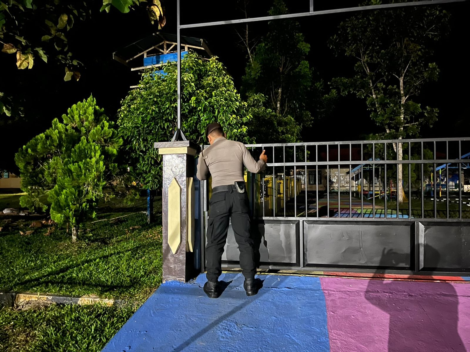 Petugas juga menyisir halaman, area bermain, dan sekitar gedung TK Bhayangkari untuk mengantisipasi potensi gangguan kamtibmas. Kehadiran polisi berseragam pada dini hari menjadi langkah preventif mencegah niat pelaku tindak pidana di lingkungan sekolah.