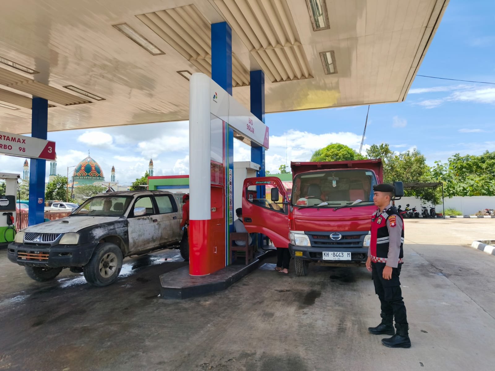 Seperti SPBU di Jl. Jenderal Sudirman Puruk Cahu, Kec. Murung, personil Satsamapta Polres Mura memantau antrian panjang untuk mendapatkan BBM bersubsidi, Kamis (9/4/2026).