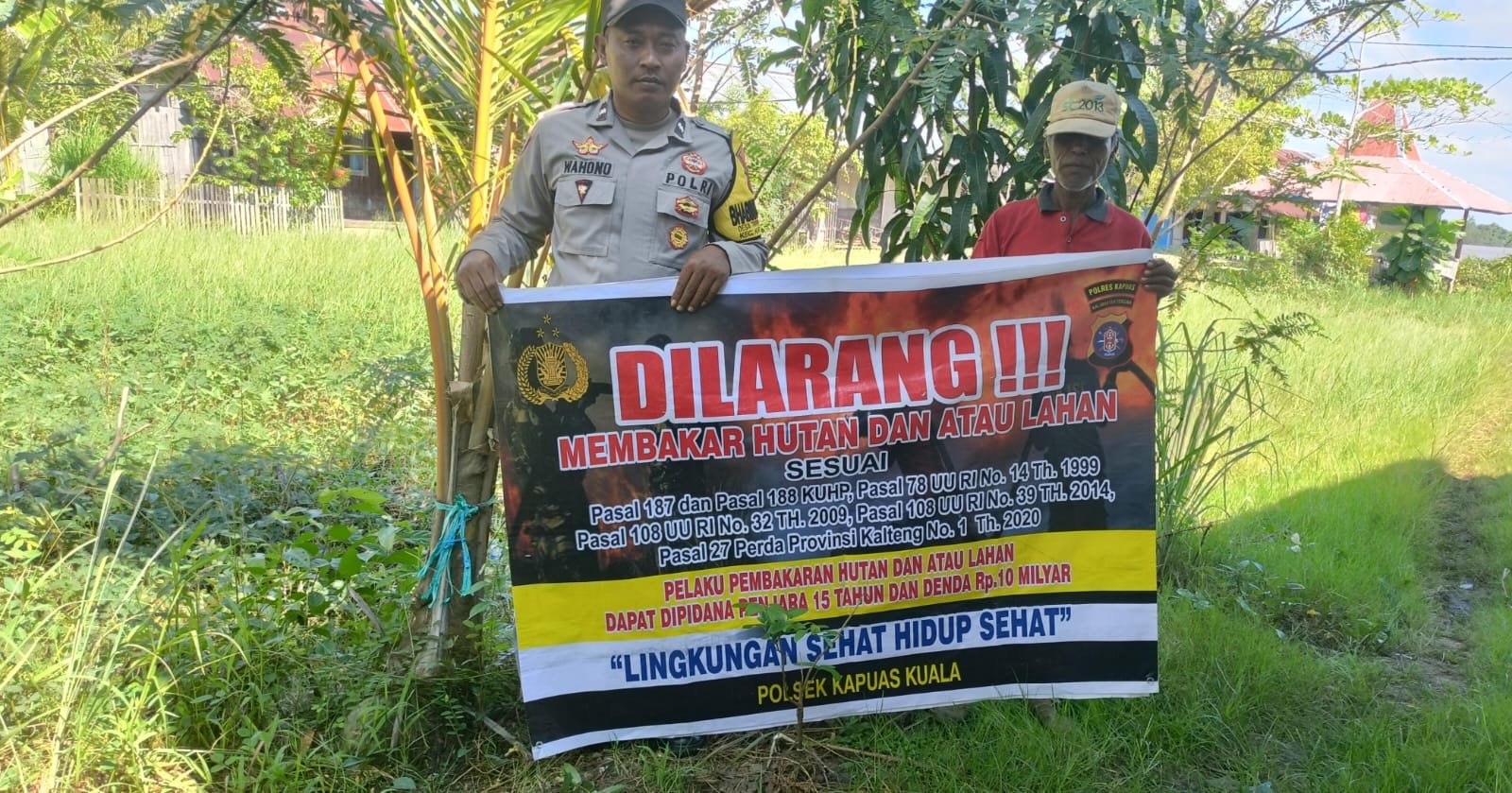 Polsek Kapuas Kuala Polres Kapuas Jajaran Polda Kalteng- Dengan adanya imbauan dan sosialisasi ini warga diharapkan sadar akan pentingnya menjaga lingkungan dan mencegah karhutla dapat semakin meningkat dan tentang larangan membakar hutan lahan serta ancaman pidana dari perbuatan tersebut.